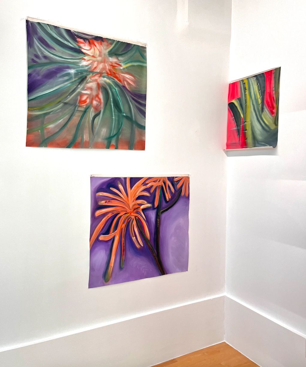 With this collection of ten paintings, Risi fosters a platform for intimate conversations of post-isolation. During her recent residency in Mahon, Menorca, the artist contemplated questions about the self. The comparison of our internal red and the red distill of some of the aloes brought questions of observing our cosmology, as well as islands. In selecting pieces of different dimensions, the artist brings a comparative study of the cosmos and our relationship with a universe that has its own time and that we access through indigenous knowledge. Giving shape, as the artists mention “...to the idea of the cycles of women and, in turn, of the earth.” observing the painting and its interpretation as a universal fragmented cartography.