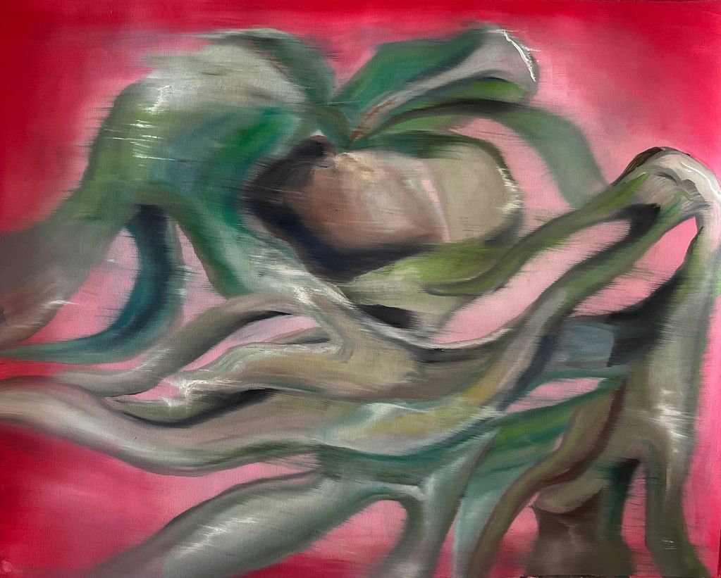 For some time, the artist, Alessandra Risi has been collecting elements of expanded territories. Elements as tangible as her prominent collection of matches, now translated into fragmented paintings and canvases interpreting subtle memories from everyday life. For Fragmented Landscapes, the artist composed a symphony of velvety gray greens, sometimes opaque, dramatically juxtaposed against reddish soil or vibrant purples. Her tone for narrating holds a mysterious low tone, defined contrast, and cloudy atmosphere that could be easily identified from South American ecosystems, referencing the legacies of a specific South American school of landscape painting, and 20th-century Italian cinema.